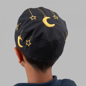 TAKKE BEZ HİLAL YILDIZ DESEN NAKIŞLI ÇOCUK (SİYAH) (12 ADET)