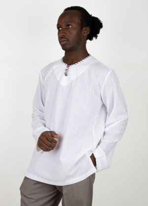 YASİR GÖMLEK BULDAN BEZİ DÜĞMELİ YAKASIZ UZUN KOLLU BEYAZ XXL